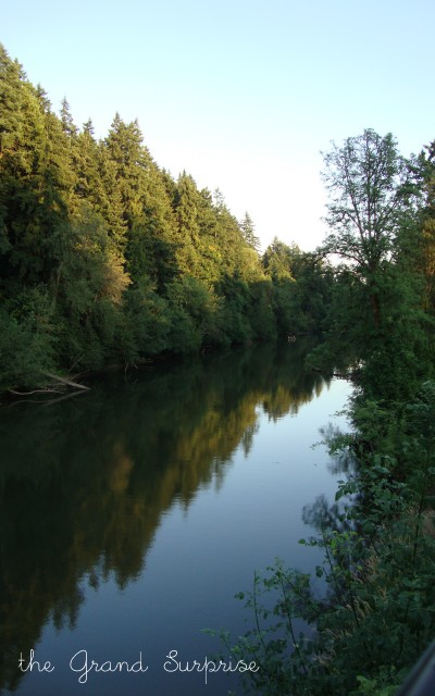 Actually our "newlyweds" had been talking recently about a great trail next to the Tualatin River that they use when they take their evening walks. It has a nice pedestrian bridge which crosses the river and a long, winding path that connects two parks in neighboring towns. We finally had a chance to try it out one warm night last week and loved all the animals, fields, parks and tree lined banks along the river
