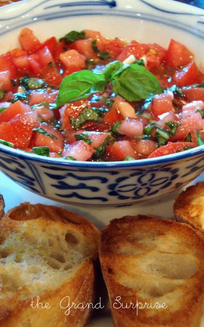 topped with fresh, warm, homegrown tomatoes and basil! Now that our tomatoes are finally ripe we will definitely be enjoying this